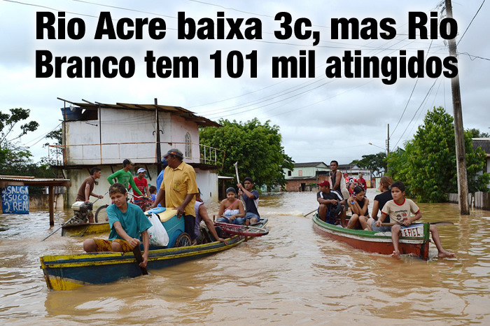 O Governo do Estado e a Prefeitura de Rio Branco têm mobilizado todos os seus recursos humanos e materiais para atender as vítimas desse grave desastre natural que vem ocorrendo no Acre. Além do apoio do Governo Federal e diversas instituições, o Governo do Estado tem tido apoio principalmente de inúmeros cidadãos acreanos que se colocam como voluntários no atendimento às vítimas da alagação.