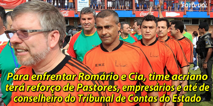 Time acriano para o Jogo da Solidariedade terá políticos, pastores, empresários e até o presidente do Tribunal de Contas Estado. Entre os atletas que são ex-jogadores, está confirmada a presença do Rei Artur, Carlinho, Bujica, Antônio Maria [ex-Independência], Sairo [campeão pela Segunda Divisão do Campeonato Brasileiro], Eli e Mauricinho [ex-Rio Branco].